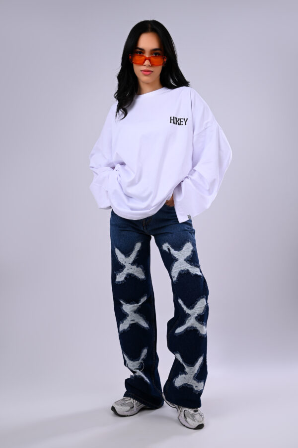 The MY X Pants are a unique, high-impact piece designed to be the focal point of your streetwear look. They blend the comfort of a relaxed denim fit with distinctive, highly textured graphic details.